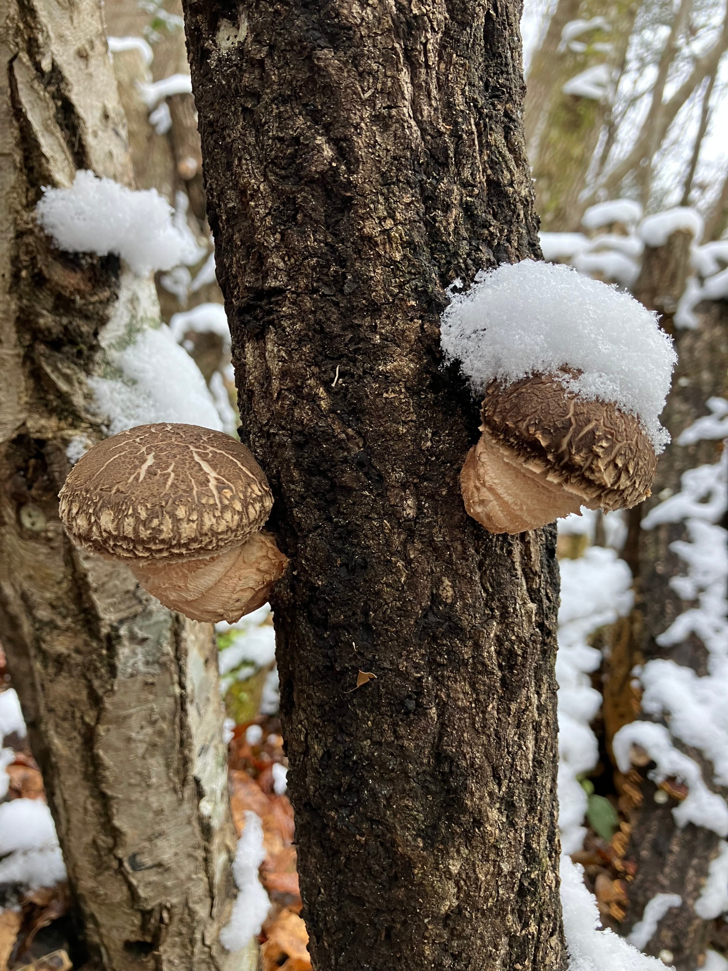 気温が下がり,少しづつ成長したしいたけは、肉厚でボリュームがあり、香り、旨味、食感が味わえます。しいたけステーキ、バター焼き、肉詰めや鍋ものに‥。また、かさから切った軸は、石づき部分を切り、ごま油と砂糖、しょうゆ、塩こしょうなどでキンピラにお勧めです。
